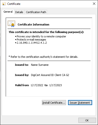 Digicert Client Premium Certificate?To protect emails and sign documents.