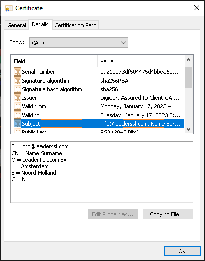 LeaderTelecom Digicert Secure Email (SMIME) for Business Certificates prices